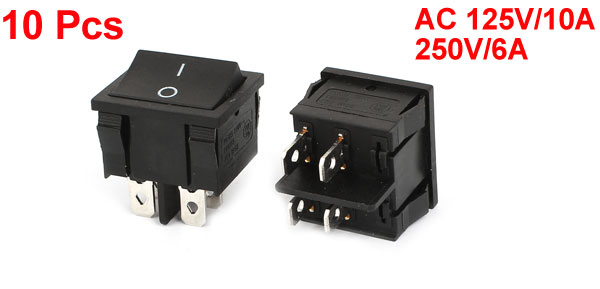Main Color Black, Silver Tone Brand DMiotech Country of Manufacture CHINA Terminals 4 Pin (ON-OFF) Model KCD2-49 Material Plastic,Metal Total Size 25 x 22 x 19mm/ 1" x 0.9" x 0.7"(L*W*T) Product Name Rocker Switch Net Weight 70g Package Content 10 x Rocker Switch Action DPST Mounting Dimension 22 x 19mm/ 0.9" x 0.7"(L*W) Rating Voltage AC 125V/10A 250V/6A - Reviews