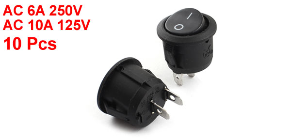 AC 10A 125VContact Type Latching Total Size 2.3 x 2cm/0.9" x 0.8"(D*H) Mounting Dia 2cm/0.8" Color Black Material Plastic, Metal Total Weight 40g Package Content 10 x Rocker Switch - Reviews