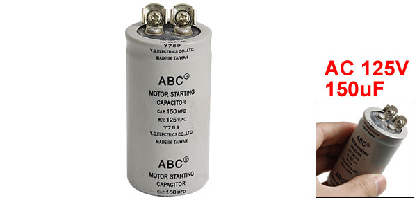 Product Name Motor Capacitor Material Polypropylene Capacitance 150uF Rated Voltage AC 125V Body Dimension 3.5 x 7cm/ 1.4" x 2.8" (D*H) Color Gray Weight 70g Package Content 1 x Motor Capacitor - Reviews