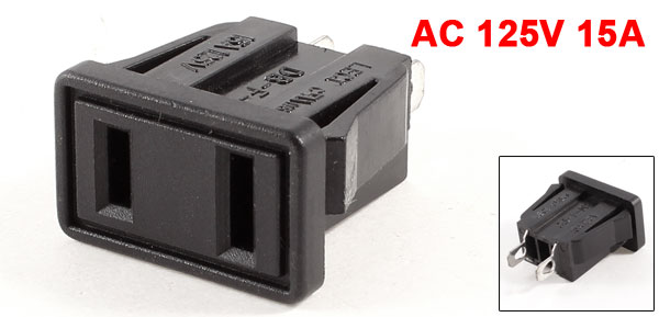 Product Name Power Inlet Socket Power Supply AC 125V 15A Plug Type IEC320 C9 Pins Number 2 Overall Size 2.6 x 1.6 x 2.4cm / 1" x 0.6" x 0.9" (L*W*T) Mounted Size 23 x 12mm/0.9" x 0.5"(L*W) Material Plastic, Metal Color Black, Silver Tone Weight 6g Package Content 1 x Power Inlet Socket - Reviews