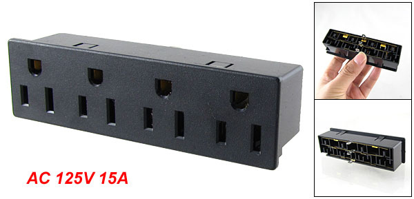 AC 125V 15A 4 Way Panle Mounting Black US Outlet Power Socket