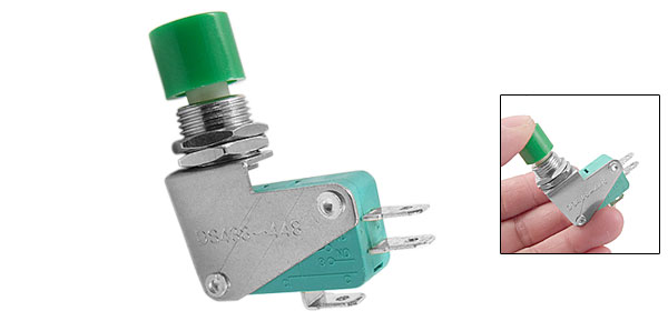 DS-438 Actuator Type Push Button Power AC 250V 6A; AC 125V 15A Contact configuration SPDT Body Size 2.8 x 1.6 x 1.1cm/ 1.1" x 0.6" x 0.4" (L*W*T) Dia of Holes in Terminals 1.6mm/ 0.06" Thread Dia 11.8mm/0.46" Terminal Blade Width 5mm/ 0.19" Total Size 4 x 1.6 x 4.6cm/ 1.6" x 0.6" x 1.8" (L*W*H) Material Plastic & Metal Color Green, Silver Tone Net Weight 18g Package Content 1 x Micro Switch - Reviews