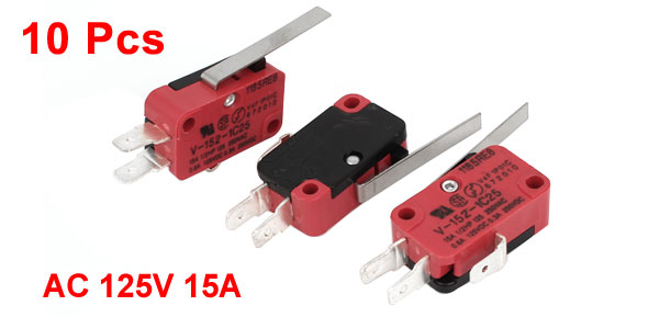 AC 125V 15A SPDT Straight Hinge Lever Momentary Miniature Micro Switch 10pcs