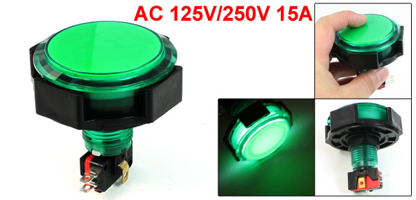 Product Name Push Button Switch Contact Type Momentary Action Type 1 NO, 1 NC Rated Voltage & Current AC 125V/250V 15A Thread Diameter 24mm/0.94" Overall Size(Approx.) 67 x 74mm / 2.6" x 2.9"(Max.Diameter*Height) Color Green, Black Material Plastic, Electronic Parts Weight 71g Package Content 1 x Push Button Switch - Reviews