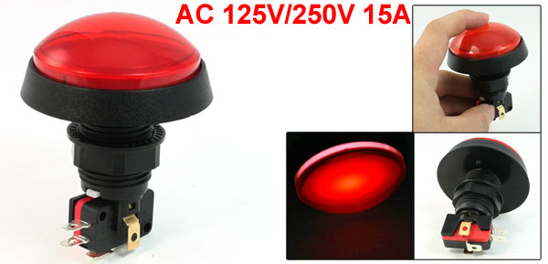 Product Name Push Button Switch Contact Type Momentary Action Type 1 NO, 1 NC Light Voltage DC 12V Light Color Red Rated Voltage & Current AC 125V/250V 15A Pin Quantity 5 Thread Diameter 24mm/0.94" Overall Size(Approx.) 60 x 78mm / 2.4" x 3.1"(Max.Diameter*Height) Color Red, Black Material Plastic, Electronic Parts Weight 48g Package Content 1 x Push Button Switch - Reviews