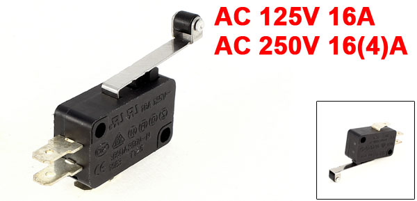 AC 250V 16(4)ATotal Size(Each) 4 x 2.3 x1.1cm/1.6" x 0.9" x 0.43"(L*W*T) Fixing Holes Diameter 3.2mm / 0.13" Roller Lever Size 28 x 4.3mm / 1.1" x 0.17" (L * W ) Material Plastic, Metal Switch Color Black Net Weight 7g Package Content 1 x Micro Switch - Reviews