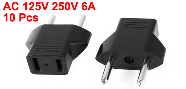 Product Name Travel Plug Adapter Type US 2 Pin Socket to Male EU Plug Input AC 125V/250V 6A Size (No Include Pin) 3.5cm x 2.7cm x 1.3cm / 1.4" x 1.1" x 0.5" (L*W*T ) Main Color Black Weight 85g Package Content 10 x Travel Plug Adapter - Reviews
