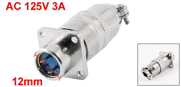 AC 125V 3A 3-Pin Terminal Aviation Plugs Connectors Joint for 12mm Panel Hole