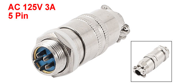 AC 125V 3A 5-Pin Terminal Aviation Plugs Connectors for 12mm Panel Hole Dia