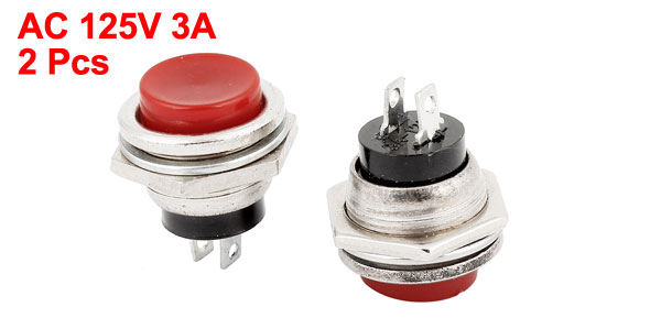AC 125V 3A Momentary SPST 2 Pin Terminal Red Pushbutton Switch 2 Pcs