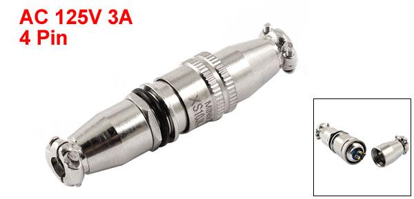 Product Name Aviation Connector Plug Model XS10-4 Rated Voltage AC 125V Rated Current 3A Withstand Voltage AC 1500V Pin Quantity 4 Pin Thread Diameter 9mm/ 0.35" Cable Hole Diameter 4mm/0.16" Total Size 14 x 55mm/ 0.55" x 2.2" (max.D*L) Material Metal Color Silver Tone Weight 20g Package 1 x Aviation Connector Plug  - Reviews