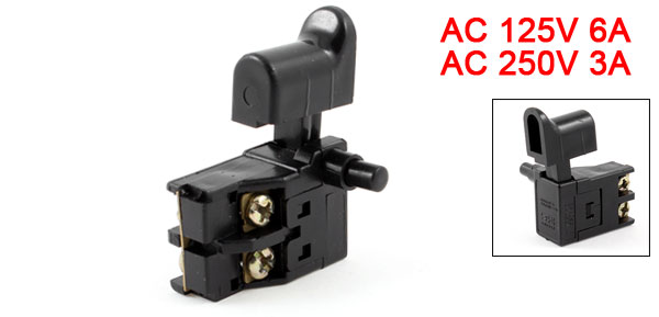 Product Name Electric Tool Switch Action Type DPST, Normally Open Lock Type No Lock on Technical Parameter AC 125V 6A ,AC 250V 3A Size 50 x 35 x16mm/ 2" x1.4" x 0.6" (L*W*H) Material Plastic Color Black Net Weight 19g Package 1 x Electric Tool Switch - Reviews