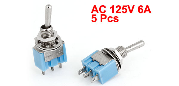 Product Name Toggle Switch Color Light Blue, Silver Tone Power 6A 125V AC Position 2 Position(On/On) Pins 3 Type SPDT(Latching) Size 33 x 13 x 8mm/1.3" x 0.5" x 0.3" (L*W*H) Weight 23g Package Content 5 x Toggle Switch - Reviews
