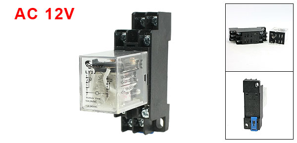 Product Name Relay with Socket Relay Model No. LY2J Coil Voltage 12VAC Contact Capacity 5A, 240VAC/28VDC Number of Pins 8 Overall Size(Approx.) 70 x 22 x 65mm/2.8" x 0.9" x 2.56"(L*W*H) Material(External) Plastic Color Clear, Black Weight 65g Package Content 1 x Relay with Socket - Reviews