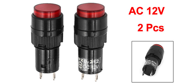 AC 12V Red Round Cap 2 Terminal Signal Lamps Indicator Lights 2PCS