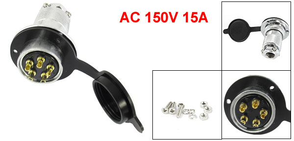 AC 150V 15A 30mm Metal 5Pins Male Female Aviation Plug Connector w Cover