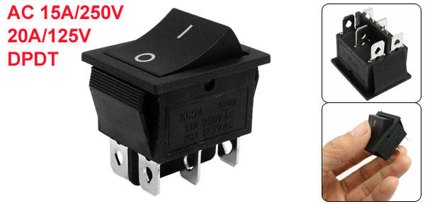 Product Name Rocker Switch Poles DPDT Terminals 6 Pin (On-On) Rating Voltage AC 250V 15A