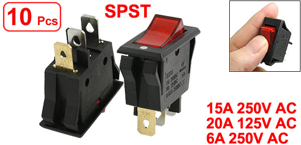 AC 15A/250V 20A/125V Red Light ON-OFF 2 Position SPST Boat Rocker Switch x 10pcs