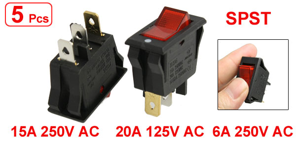 AC 15A/250V 20A/125V Red Light ON-OFF SPST Snap in Boat Rocker Switch x 5pcs