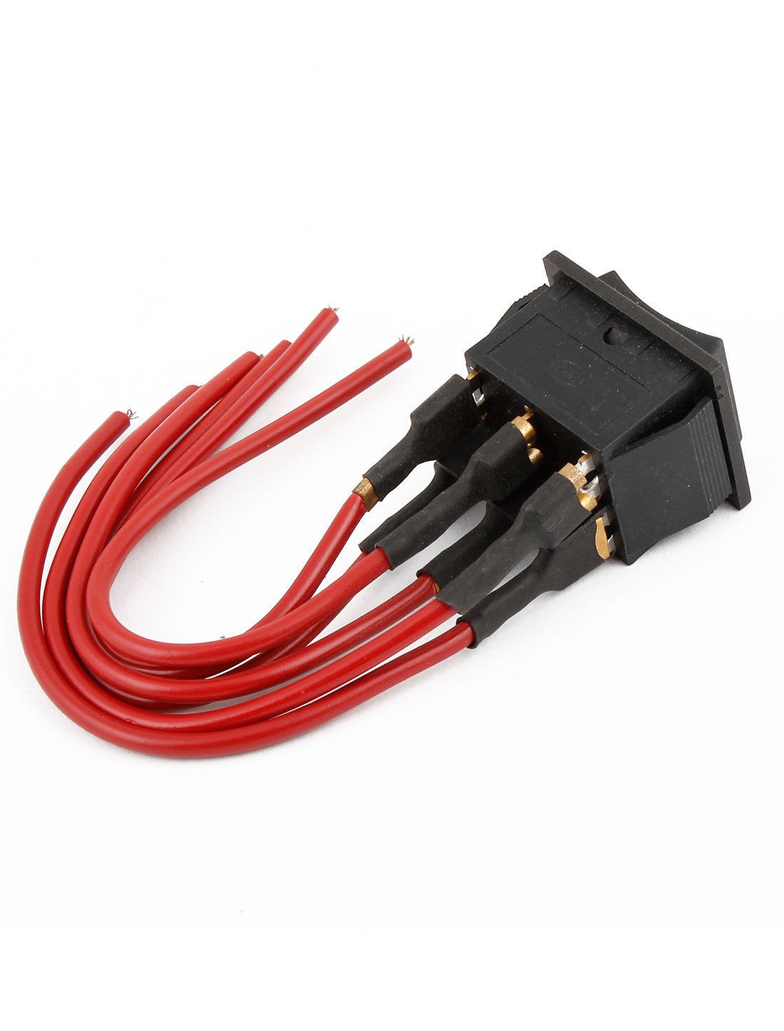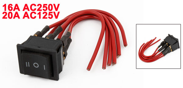 DetailsAC 16A/250V 20A/125V 6 Red Wires DPDT Snap In Rocker Switch  Product Name Rocker Switch Poles DPDT Terminals 6 Wires Rated Voltage 16A AC250V 20A AC125V Overall Size 31 x 25 x 28mm / 1.2" x 1" x 1.1" (L*W*H) Mounting Size 28 x 21 x 26mm / 1.1" x 0.8" x 1" (L*W*Depth) Wire Length 10cm/ 3.9" Color Red Material Plastic, Metal Total Weight 23g Package Content 1 x Rocker Switch