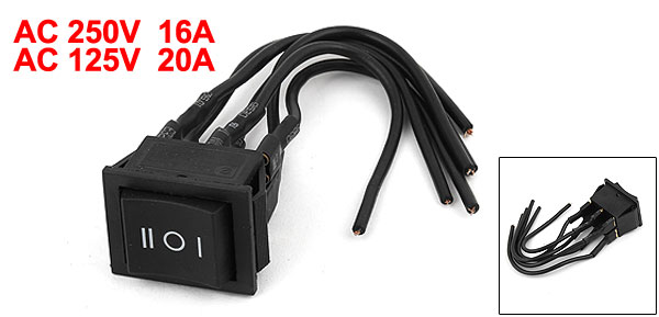 AC 16A/250V 20A/125V 6 Wires DPDT Rocker Switch Black