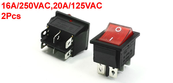 Product Name Rocker Switch Contact Type DPDT Terminals 6 Pin (ON-OFF) Rating Voltage 16A/250VAC,20A/125VAC Light Color Red Total Size 3.5 x 2.5 x 3.2cm / 1.4" x 1" x 1.3"(L* W *T) Mounting Dimension 3 x 2.2 x 2.8cm/1.2'' x 0.9'' x 1.1'' (L*W*Depth) Color Black, Silver Tone, Red Material Plastic & Metal Total Weight 28g Package Content 2 x Rocker Switch - Reviews
