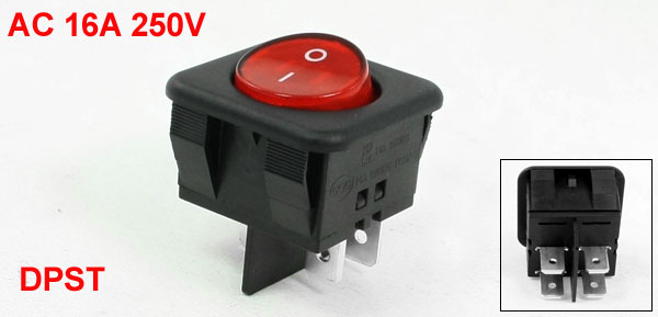 Product Name Rocker Switch Connection Type DPST Position On-Off Terminals Number 4 Voltage/Current 16A 250V AC