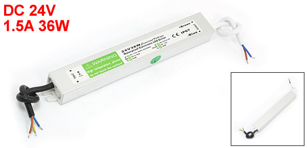 Product Name Waterproof LED Driver Input AC 170-250V 50/60Hz 0.36A 42W Output DC 24V±0.5V 1.5A 36W Protection Rank IP67 Overall Size(Approx.) 20 x 2.9 x 2cm/7.8" x 1.2" x 0.8"(L*W*T) Cable Length 10cm/3.9" Shell Material Aluminum Alloy, Plastic Main Color Silver Tone Net Weight 240g Package Content 1 x Waterproof LED Driver - Reviews