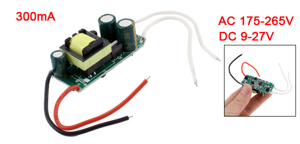 AC 175-265V DC 9-27V 300mA Power Supply Transformer for (5-7) X 1W LED Light