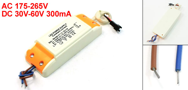 Product Name 12-18 x 1W LED Driver Input AC 175-265V, 50/60Hz Output DC 30-60V, 300mA Overall Size(Approx.) 11.5 x 4.5 x 2.6cm/4.5"x 1.8"x 1"(L*W*T) Each Wire Length 10cm/3.9" Shell Material Plastic Main Color White, Orange Weight 87g Package Content 1 x LED Driver - Reviews