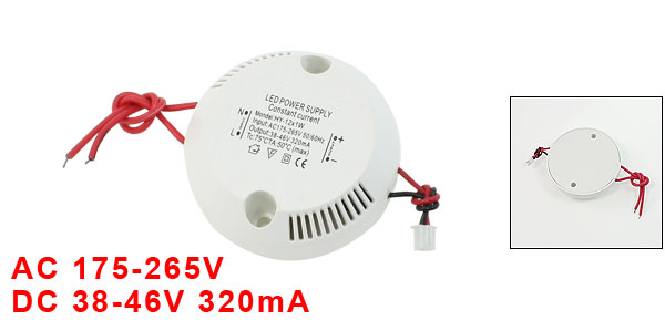 Product Name LED Driver Model HY-12X1W Input AC 175-265V, 50/60Hz Output DC 38-46V 320mA Body Size(Approx.) 7 x 2.3cm / 2.75" x 0.9" (D*T) Cable Length 10cm/3.9", 6cm/2.4" Mounting Hole Dia 4.8mm/0.19" Mounting Hole Spacing 5.5cm/2.2" Shell Material Plastic Main Color White, Red Weight 49g Package Content 1 x LED Driver - Reviews