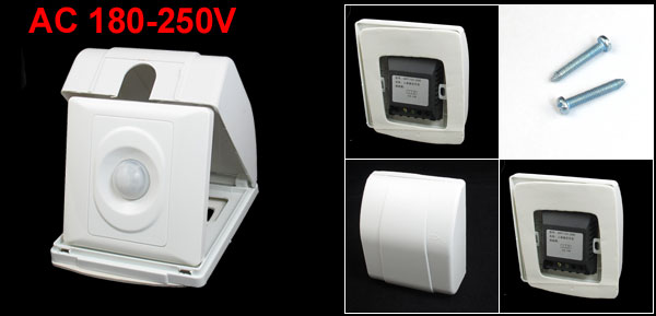 AC 180-250V 50Hz 115 Degree 25-100W Load PIR Motion Sensor Switch w White Cover