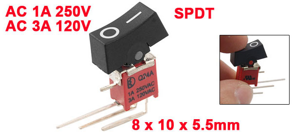 Product Name Rocker Switch Poles SPDT Terminals 4 Pin (On - On) Voltage AC 1A 250V AC 3A 120V Total Size 2.3 x 2.2 x 0.5cm/0.9'' x 0.87'' x 0.2'' (L*W*T) Mounting Dimension 8 x 10 x 5.5mm/0.31'' x 0.4'' x 0.22'' (L*W*Depth) Color Black, Red Material Plastic & Metal Total Weight 2g Package Content 1 x Rocker Switch - Reviews