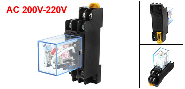 AC 200-220V 5A Coil 8Pin DPDT 35mm DIN Rail Electromagnetic Power Relay + Socket