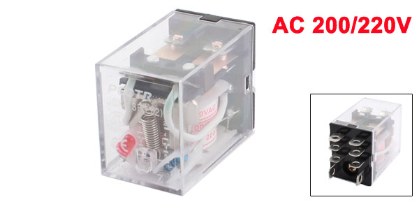 Product Name Electromagnetic Relay Model No. JXQ-13F(LY2) Coil Voltage AC 200/220V Contact Capacity 5A 250VAC /5A 30VDC Type DPDT, 2NO 2NC Indicator Light Color Red Pin Quantities 8 Pin Size 8 x 6mm/0.3" x 0.24"(L*W) Overall Size (Approx.) 27 x 20 x 35mm/1.1" x 0.8" x 1.4"(L*W*H) Shell Material Plastic Main Color Clear, Black Net Weight 30g Package Content 1 x Electromagnetic Relay - Reviews