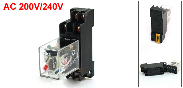 AC 200V/240V Coil DPDT 8 Terminal General Purpose Relay w Socket Base