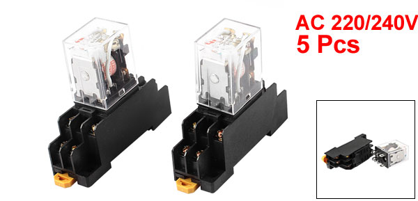AC 220/240V Coil Red Indicator Lamp DPDT 8 Pins Power Relay 5 Pcs + Socket Base