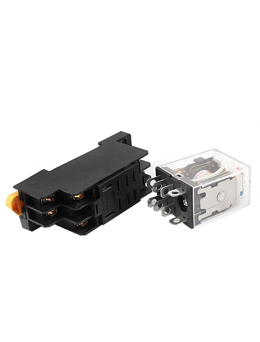 Light Color Red Type DPDT(2NO 2NC ) Number of Terminals 8 Mount Rail Type 35mm DIN Rail Fixing Mount Hole Size 5 x 4.5mm/0.2" x 0.18"(L*W) Relay Size (Approx.) 4 x 2.7 x 2cm/1.6" x 1.1" x 0.8"(L*W*H) Socket Size 7.5 x 2.2 x 3cm/3" x 0.87" x 1.2"(L*W*H) Shell Material Plastic, Electric Parts Main Color Black, Clear Net Weight 310g Package Content 5 x Power Relay