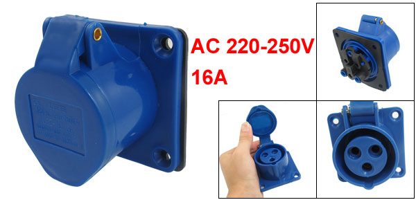 Product Name IEC309-2 Industrial Socket Socket Type 2P+E Degree of Protection IP44 (Splash Proof) Rated Current 16A Rated Voltage AC 220-250V Size 6.8 x 6.8 x 6.3cm / 2.7" x 2.7" x 2.5" (L*W*H) Installing Hole Diameter 0.55cm / 0.22" Fit Cable Diameter 0.57cm / 0.22" 0.52cm / 0.21" Hole Distance(center) 5.4 x 5.4cm / 2.13" x 2.13"(L*W) Casing Material Plastic Color Blue, Black Net Weight 86g Package Content 1 x IEC309-2 Industrial Socket