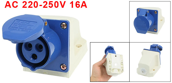 AC 220-250V 16A 2P+E IEC309-2 Panel Mount Industrial Socket Blue White