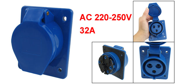 AC 220-250V 32A 2P+E IEC309-2 Panel Mount Industrial Socket Blue