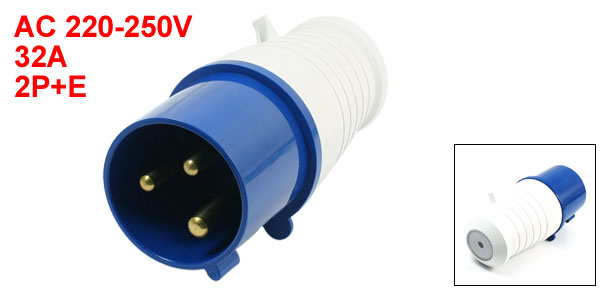 AC 220-250V 32A IP44 3-Pin Male Industrial Waterproof Plug Blue White