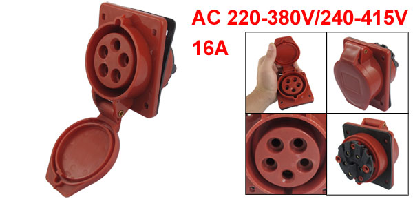 AC 220-380V/240-415V 16A 3P+E+N IEC309-2 Panel Mount Industrial Socket Red