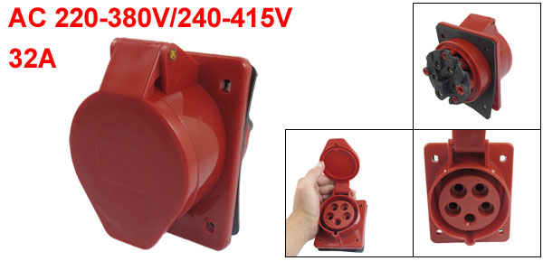 AC 220-380V/240-415V 32A 3P+E+N IEC309-2 Panel Mount Industrial Socket Red