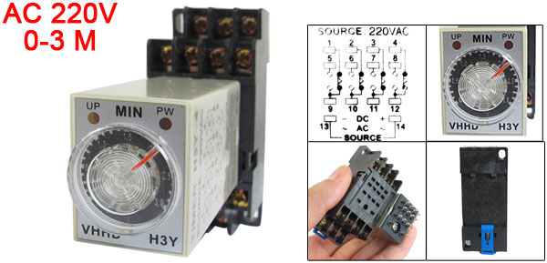 AC 220V 0-3 Minute 3min Timer Power On Delay Time Relay 14 Pin H3Y-4 + Socket