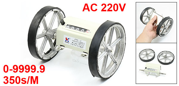 Product Name Length Measure Counter Model Z96-F Material Metal, Plastic, Rubber Voltage AC 220V Measure Range 0-9999.9 Max Ratate Speed 350s/M Wheel Size 9.5 x 1.5cm/3.7'' x 0.6''(D*W)