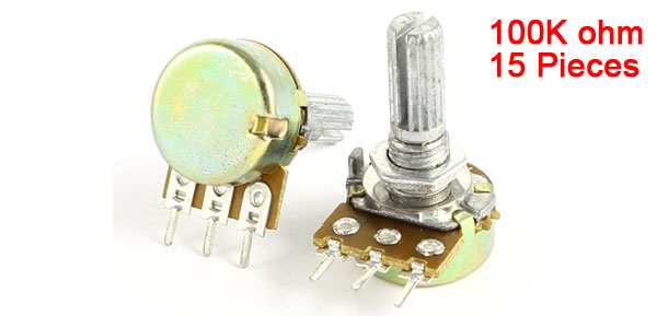 Product Name Potentiometer Resistance Value 100K ohm Power AC 220V 6A Adjustment Type Top Adjustment Type Single Linear(Type B) Features Knurled Shaft Shaft Diameter 6mm / 0.2" Shaft Length 13mm / 0.55" Mounting Thread Diameter 6.6mm / 0.26" Base Size 16 x 8.5mm / 0.63" x 0.33"(D*H) Total Height 29mm/1.1" Material Metal, Electronic Parts,Carbon Film Net Weight 108g Package 15 x Potentiometer - Reviews