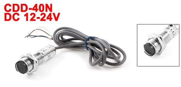 Product Name Photoelectric Switch Model CDD-40N Type DC 4 Wire, Cylindrical Type Supply Voltage DC 12-24V Detection Distance 40cm / 16" Threaded Diameter 1.75cm / 0.69'' Overall Size 2.7 x 6.4cm / 1.6'' x 2.5'' (Max.D*L)