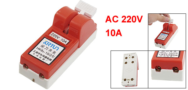 Product Name Disconnect Switch Model No. HK8-10/2 Phase Single Phase Pole 2 Rated Voltage AC 220V Rated Current 10A Mounting Hole Diameter 4.5mm/ 0.18" Mounting Hole Distance 88mm/ 3.46"(Center to Center) Overall Size(Approx) 111 x 41 x 47mm/ 4.4" x 1.6" x 1.9" (L*W*H) External Material Plastic Color Red, White Net Weight 120g Package Content 1 x Disconnect Switch - Reviews