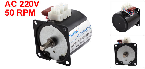 Product Name Synchronous Reduction Motor Model 60KTYZ-K7014 Voltage AC 220V Frequency 50Hz Output Speed 50 RPM Input 14W Capacitance 0.33uF Connector 3 Position Terminal Connector Total Size 76 x 60 x 80mm/ 3" x 2.4" x 3.1"(L*W*H) Body Diameter 60mm/2.4" Shaft Diameter 7mm/ 0.28" Shaft Length 20mm/ 0.8" Mount Hole Diameter 5.5mm Mount Hole Spacing 50 x 50mm/2" x 2"(L*W) Main Color Black Material Metal Weight 506g Package 1 x Synchronous Reduction Motor - Reviews